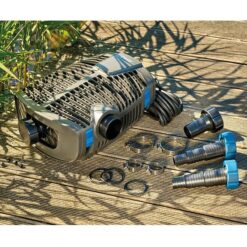 This filter and watercourse pump is a power-saving talent. The large-surface wrap-around case allows coarse dirt particles such as fish waste or dead plant parts up to 10mm in size to pass through to an external filter. Thanks to EFC (Environmental Function Control), the pump switches off automatically in the event of dry running or blockage, thus preventing damage to the unit. The AquaMax Eco Premium range is designed for energy efficient, solids-handling performance in both submersible and inline pond applications.