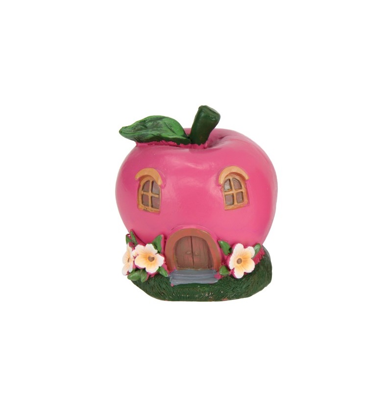 - Apple Cottage: A rosy pink apple with a leafy green stem shelters a cozy wooden door and twin arched windows. Colorful flowers bloom at the base, welcoming gentle forest fairies and orchard dwellers.