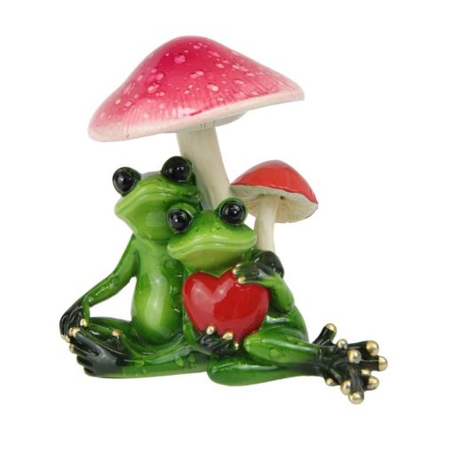 Nestled beneath mushrooms, this tender frog couple shares a quiet moment of affection. One wraps an arm around the other, who clutches a bright red heart. Whether it’s a token of love or a charming addition to your collection, this figurine speaks the language of companionship and care. Perfect for gifting to someone special or adding a heartfelt touch to your own display. This piece is a celebration of love, laughter, and leafy romance.
