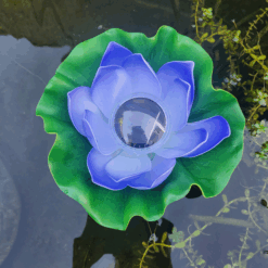 These colourful floating waterlilies with LED RGB Solar light makes an attractive addition to any pond, pool or water feature. During the day, the solar panel charges the battery and at night, the light turns on automatically. How long the light lasts depends on its location, weather conditions and seasonal lighting availability.