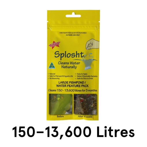 Splosht is a special blend of good, natural water bacteria that grows in the water and cleans and then keeps the water clean naturally. Splosht is safe for fish and all aquatic life. Splosht is safe for your pets to drink. Splosht is safe for water plants.
